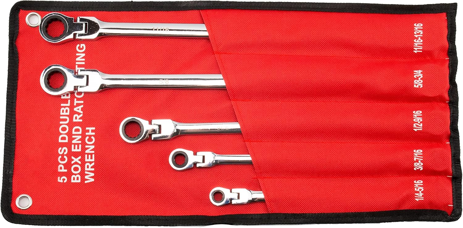 VCT 5pc Flex-Head Double Box End Ratcheting Wrenches CrV XL Design SAE 1/4" Through 13/16"…