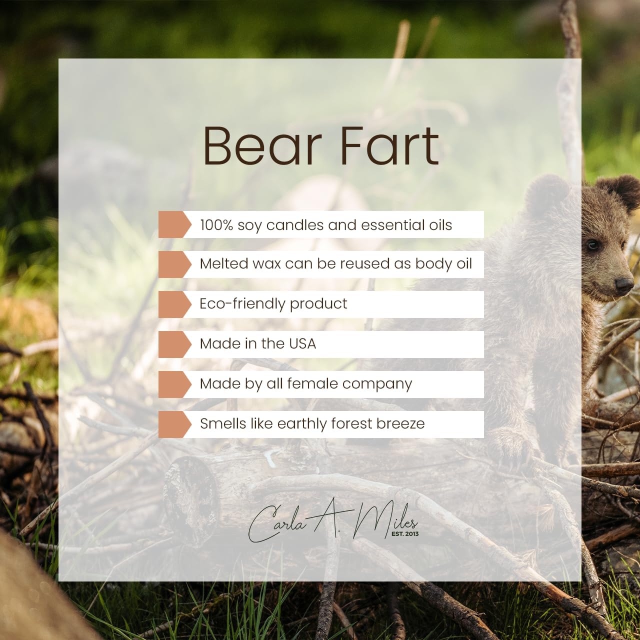 Organic Soy Wax Bear Farts Candle | Honey & Fruity Aroma | 100% Pure Soy & Essential Oils | Long-Lasting Scent | Hand-Poured in The USA | Perfect for Aroma Therapy (8oz)