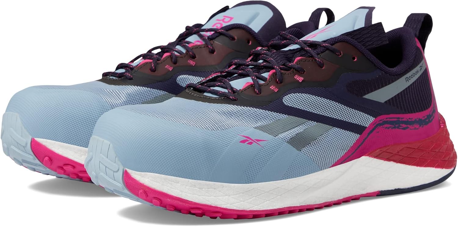 Make work an everyday adventure with these running-inspired work shoes. Made for exploration with features such as a durable toe guard on the stretch ripstop upper. Floatride Energy Foam keeps you feeling light on your feet while a rubber outsole with lugs provides extreme traction. Fresh air takes on new meaning in the new Floatride Energy 3 Adventure Work. Built to take on any work with lightweight cushioning, it’s the kind of shoe that keeps you moving whether you hit the path or the pavement. Footwear Type: Athletic Work Shoe Toe Type: Composite Upper Material: Breathable Mesh Color: Light Blue, Grey, and Pink Lining: Moisture Wicking Nylon Mesh Insole: PU Cushion Removable Footbed Outsole: Lugged Slip Resistant Rubber Bottom with Floatride Energy Foam Midsole Special Features: Floatride Energy Foam, 100% Non-Metallic, Extra Wide Toe Features: ASTM F2413, Comp Toe, XTR Comp, EH, SR-ASTM F3445 - Airy Mesh Ripstop Upper for ultimate breathability - Toe Guard for abrasion resistance that helps lengthen the life of the shoe - Floatride Energy foam is supportive, highly responsive, and lighter than traditional EVA - EVA Cushion Removable Footbed offers superior shock absorption - Slip Resistant bottom meets or exceeds ASTM F3445 standard with lugs for all-terrain traction - XTR® brand extra wide composite toe reduces weight while maintaining impact and compression protection (meets or exceeds ASTM F2413)