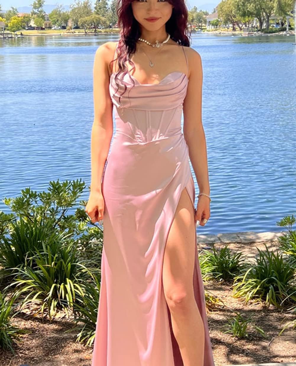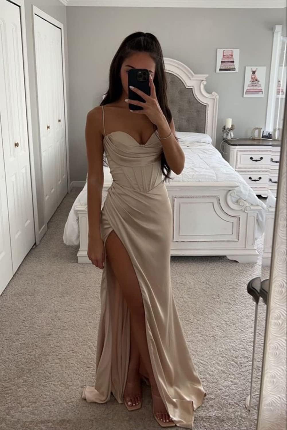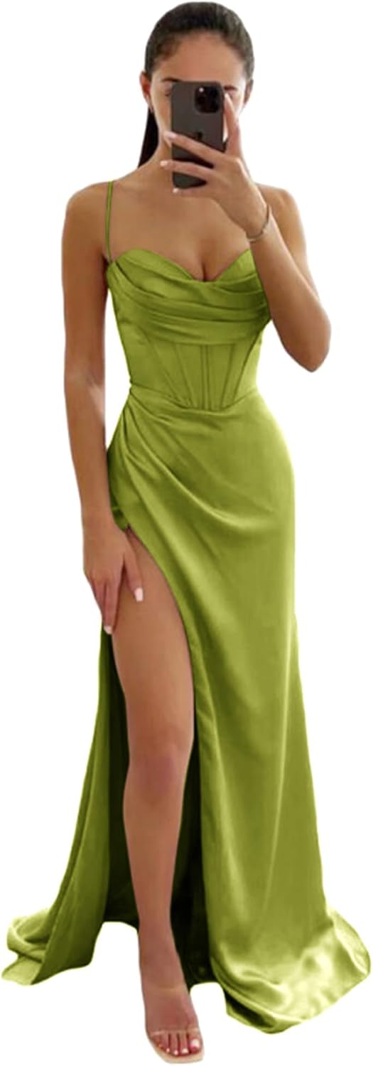 Spaghetti Strap Satin Bridesmaid Dresses for Wedding 2024 Long Sweetheart Mermaid Formal Prom Dress with Slit