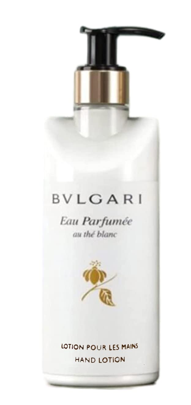 New 2022 Bottle! Bvlgari Eau Parfumee au the blanc White Tea Hand Lotion - 10.1 Fluid Ounces/300 mL Bvlgari's Eau Parfumee White Tea is a delicate and discreet, yet lively and citrusy, fragrance sourced on a base note of white tea leaves, which are known for their relaxing and healing properties. The rarest White Tea grows within a secret garden, high in the Himalayas. Its warm, spiritual essence inspired the creation of Eau Parfumée Au thé Blanc, a masterpiece signed by Bvlgari. Soothing and serene, the subtle fragrance offers a restorative experience prized by women and men alike. The idea of tea, its aromatic nuances, its refreshing, revitalizing power, inspired the creation of this radiant, revolutionary fragrance: Eau Parfumee Au The Blanc. Men are magnetized by its green, leafy energy. Women love its petal like delicacy. Offered in a luxurious collection to transform a private moment into a fragrant ritual of well being.