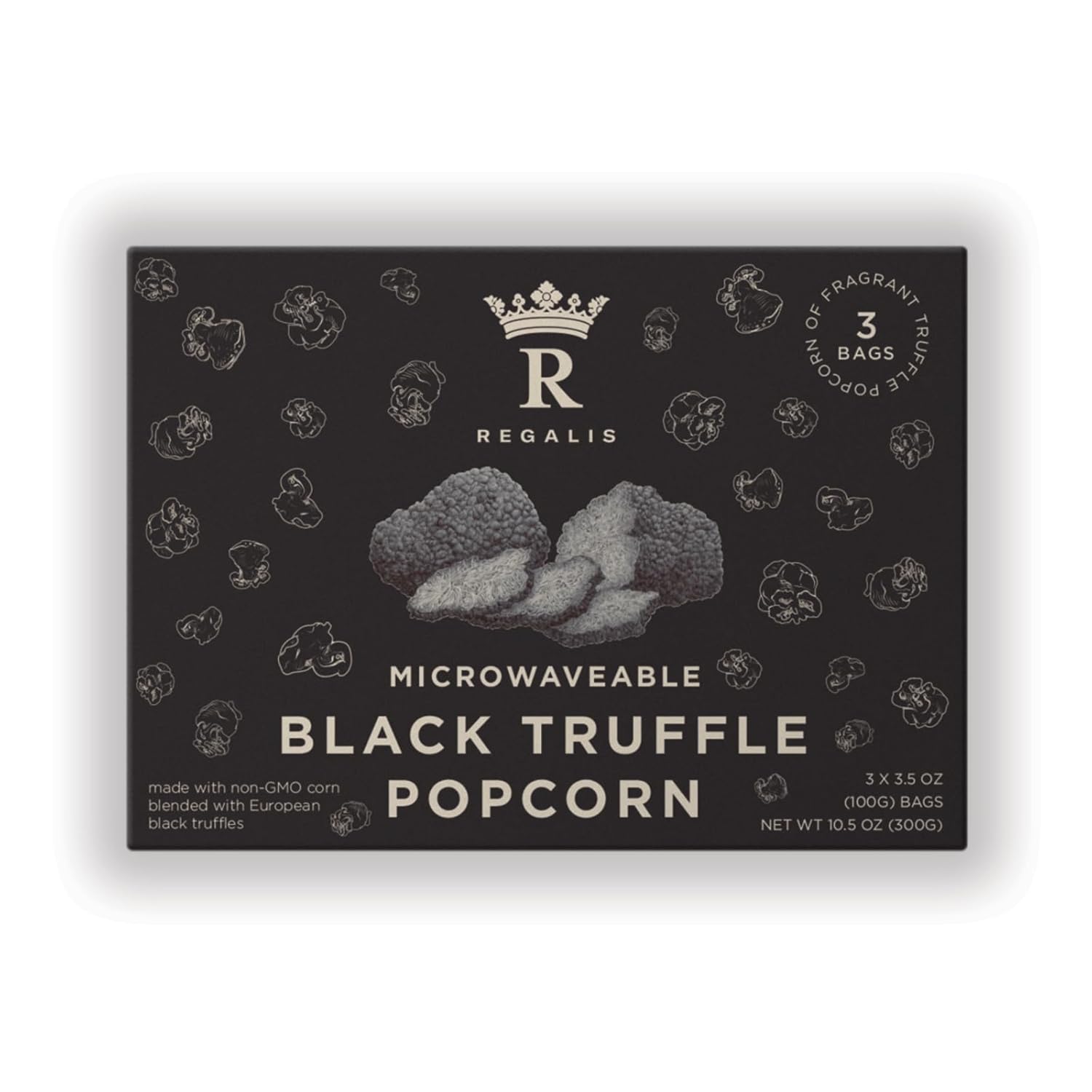 Regalis Microwavable Black Truffle Popcorn, Non-GMO Kernels, Real Black European Truffle, 3 Bags