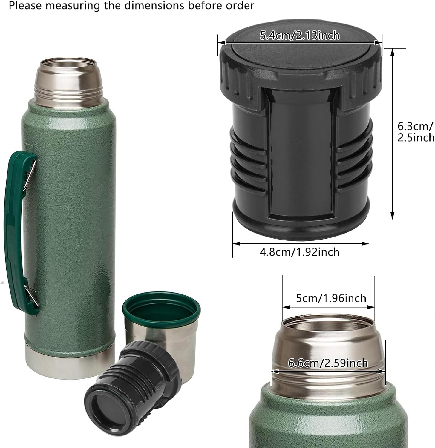Tapón de repuesto LUAATT Thermos, paquete de 2 tapones negros para evitar fugas de agua para botella de vacío Stanley Classic de acero inoxidable (1,1 qt/1,5 qt/2 cuartos de galón)