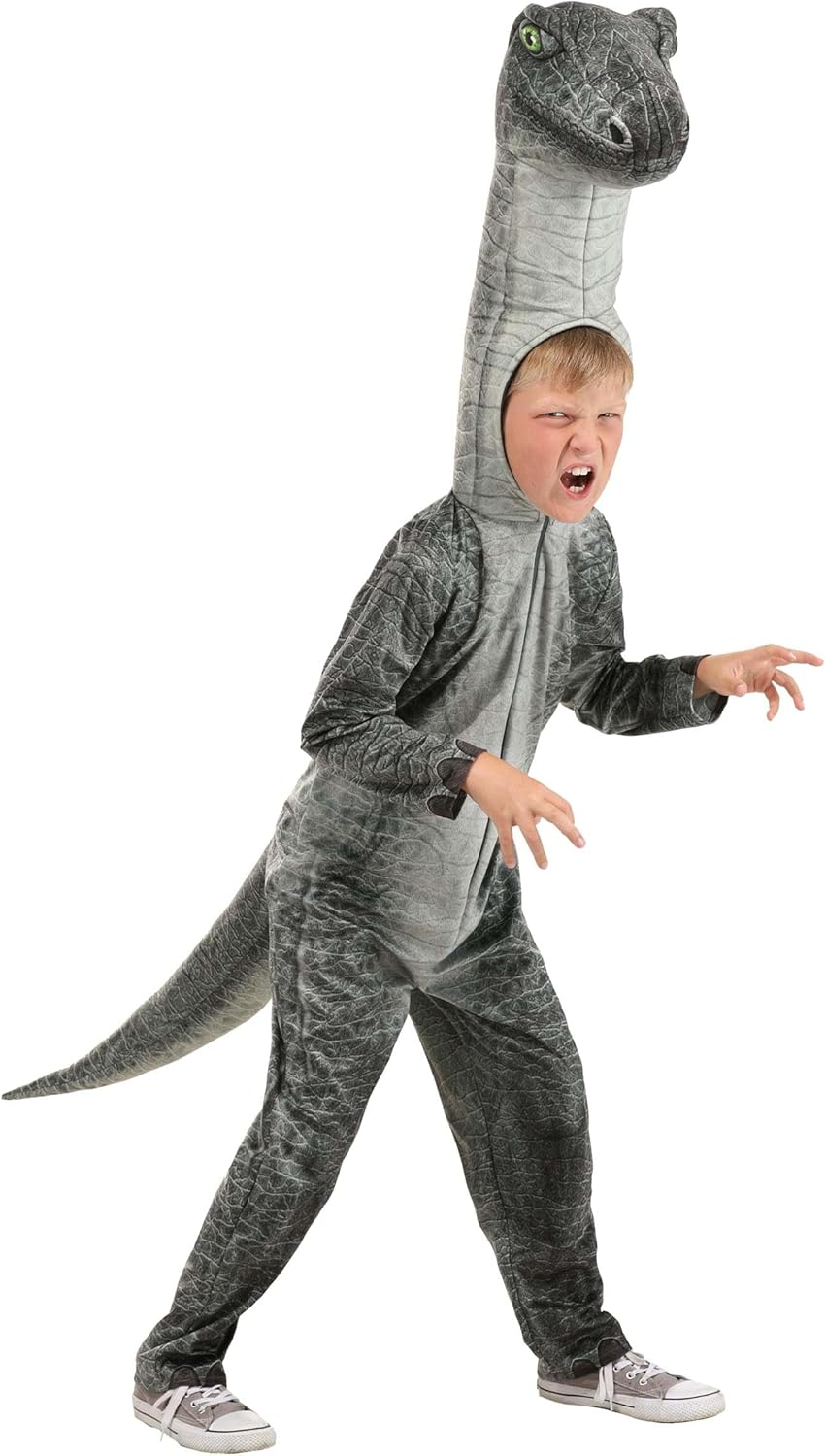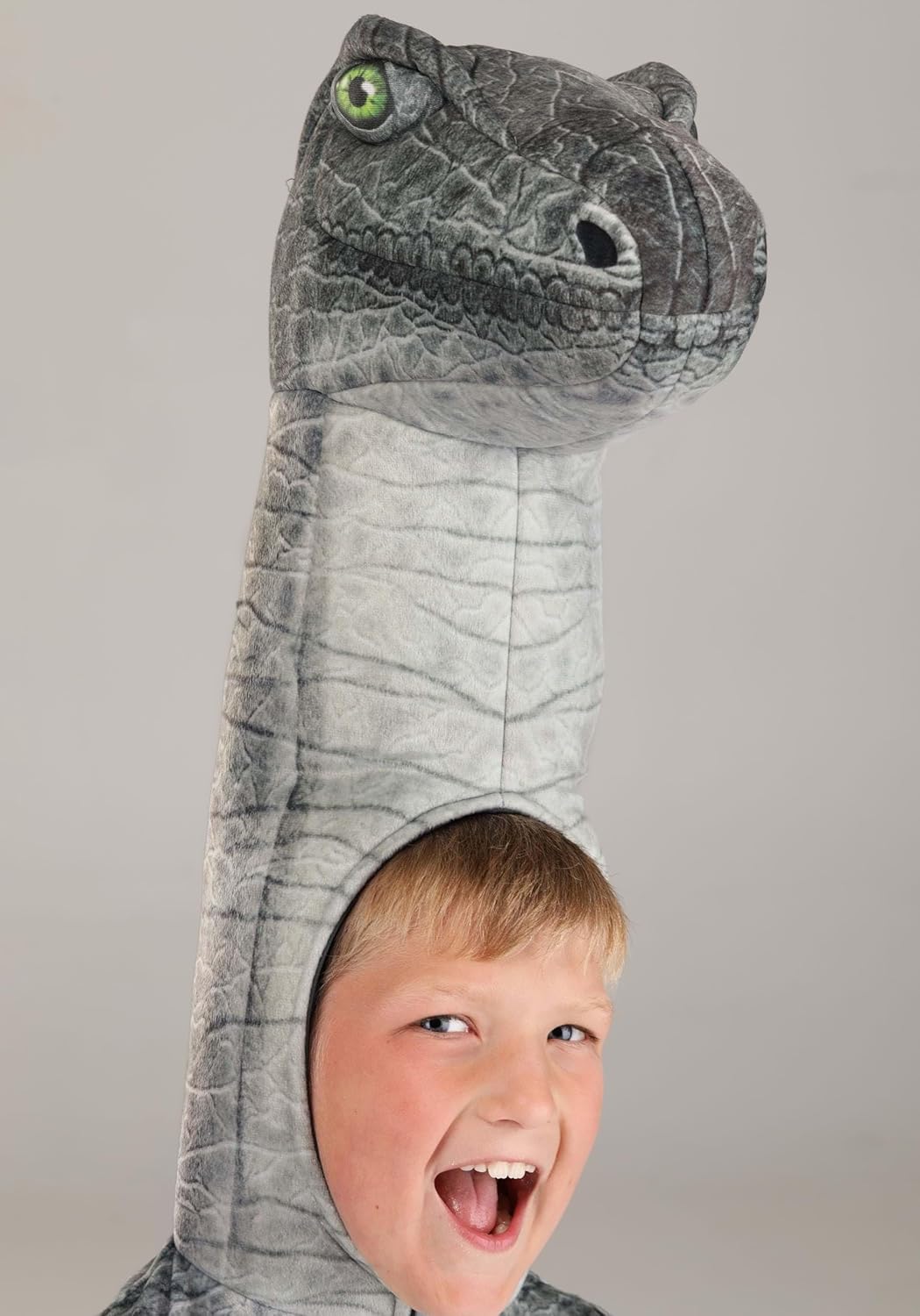 Brontosaurus Dinosaur Costume for Kids - Includes Hooded Jumpsuit, Long Neck Dinosaur Head & Tail Halloween Outfit