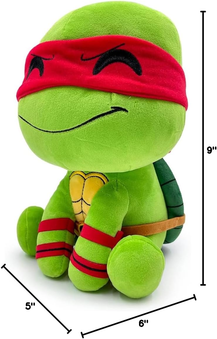 You tooz TMNT Plush Collection: From the TV series Teenage Mutant Ninja Turtles, this Raphael plush is soft and huggable! At 9 inches tall, the TMNT You tooz plush is fitted with his classic belt and red bandana over his eyes. Raphaels' arms and legs are other red pieces of his TMNT uniform.