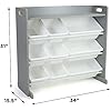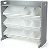 Product 2: Neutral grey wooden finish with white colored toy bins and top storage shelf.