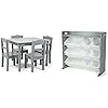 Humble Crew Kids Wood Table and 4 Chair Set, Grey & Inspire Toy Organizer with Shelf and 9 Storage Bins, Grey/White