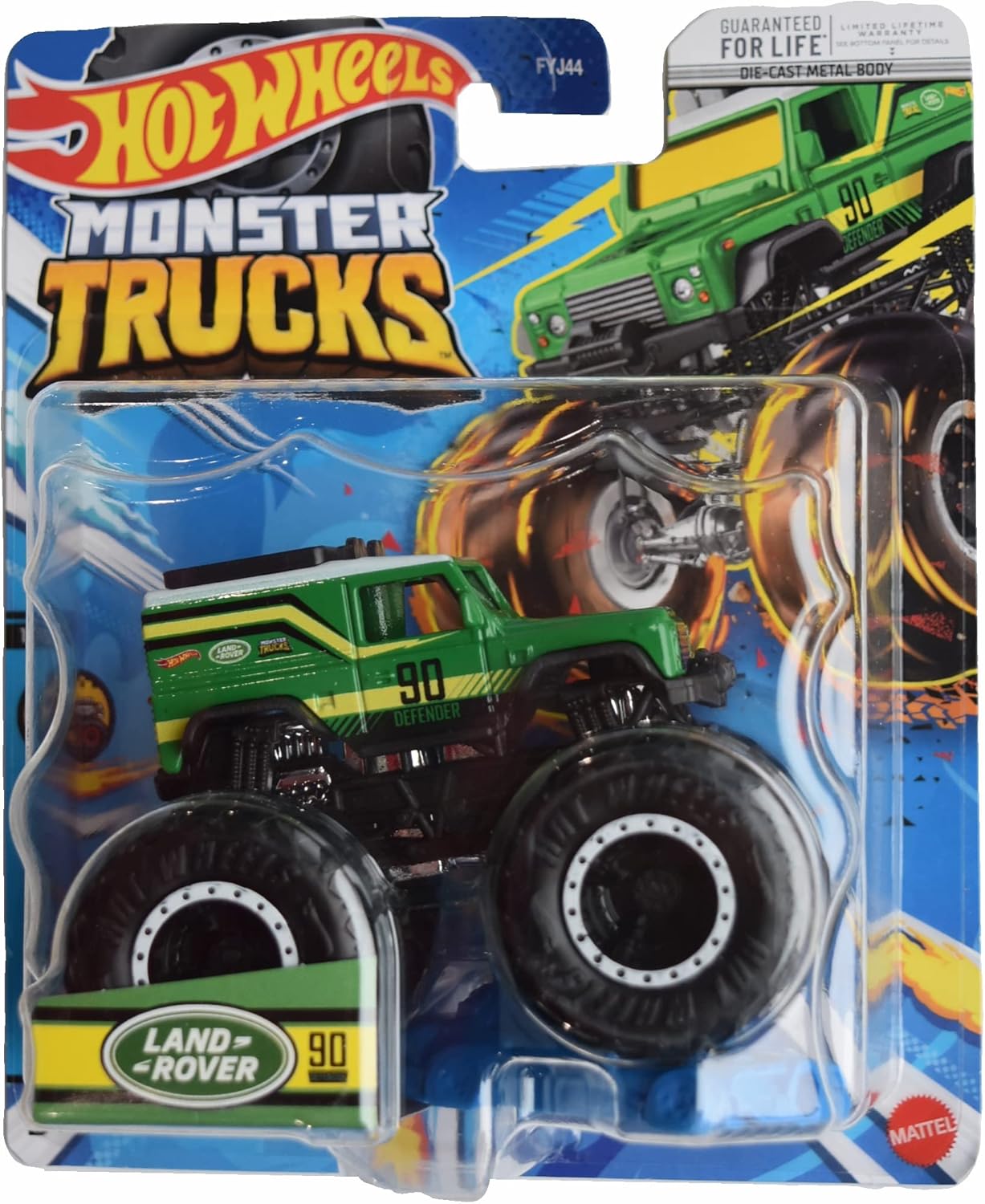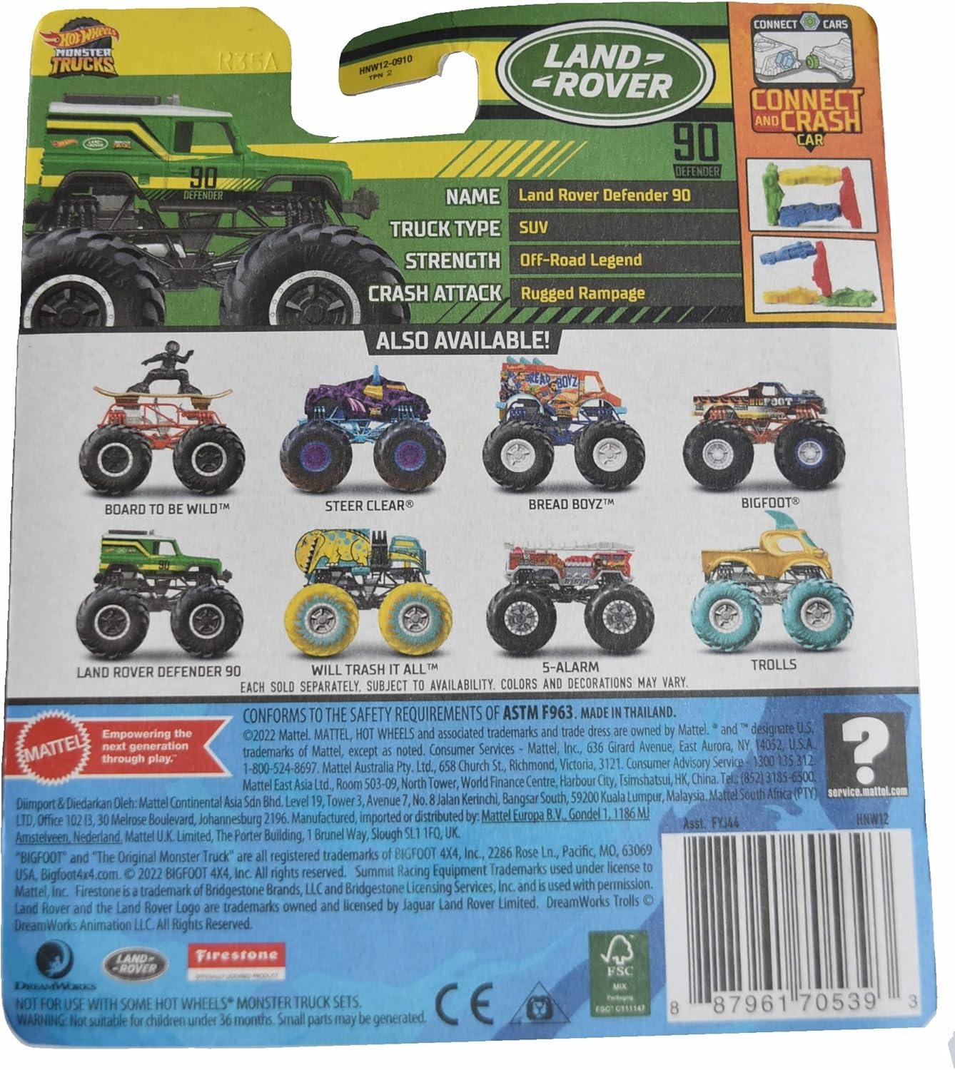 Hot Wheels 2023 Monster Trucks Land Rover Defender 90, Conecta y choca coche incluido, escala 1:64 Die-cast