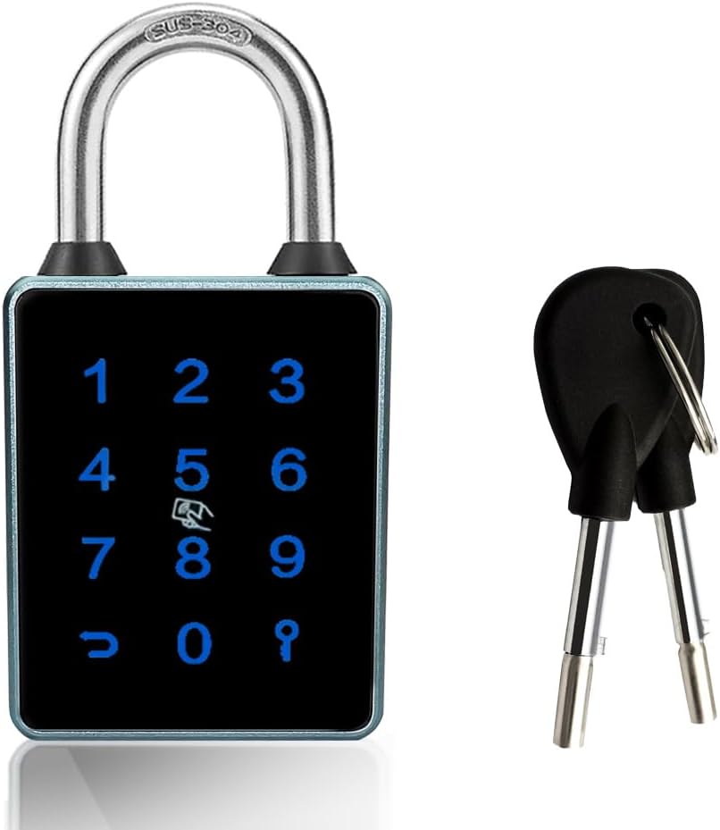 🔒【Smart Outdoor padlock Security】: The bluetooth padlock lock beam is made of stainless steel, double locking , which has excellent anti-drilling and anti-shearing functions.more strong and security, with 2 silicone waterproof rings. The lock body is made of high-quality aluminum, Comfortable Touchscreen keypad made with hight qualiy tempered glass. IP65 weatherproof and dustproof.The smart padlock is Suitable indoor and out door fully.
