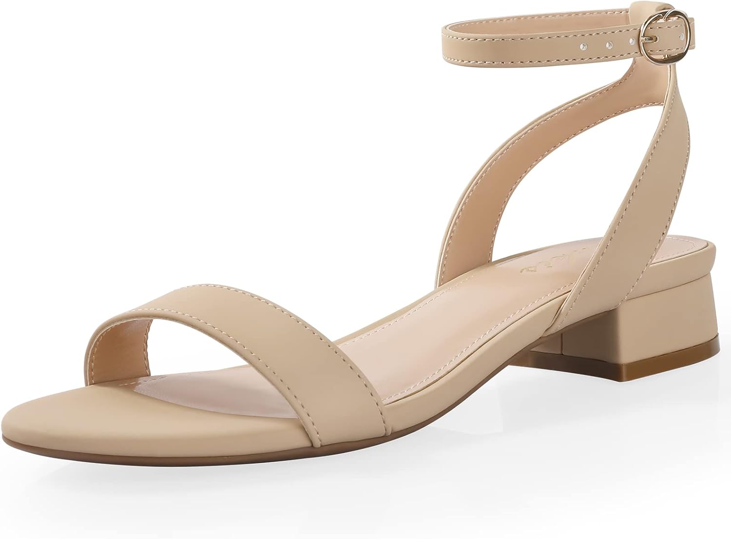 Ankis Black Nude White Red Women Sandals Comfortable Walking Strappy Open Toe Sandals for Women Dressy Summer 1 Inch Low block Heel Flat Adjustable Ankle Strap Wide Available Shoes 2025