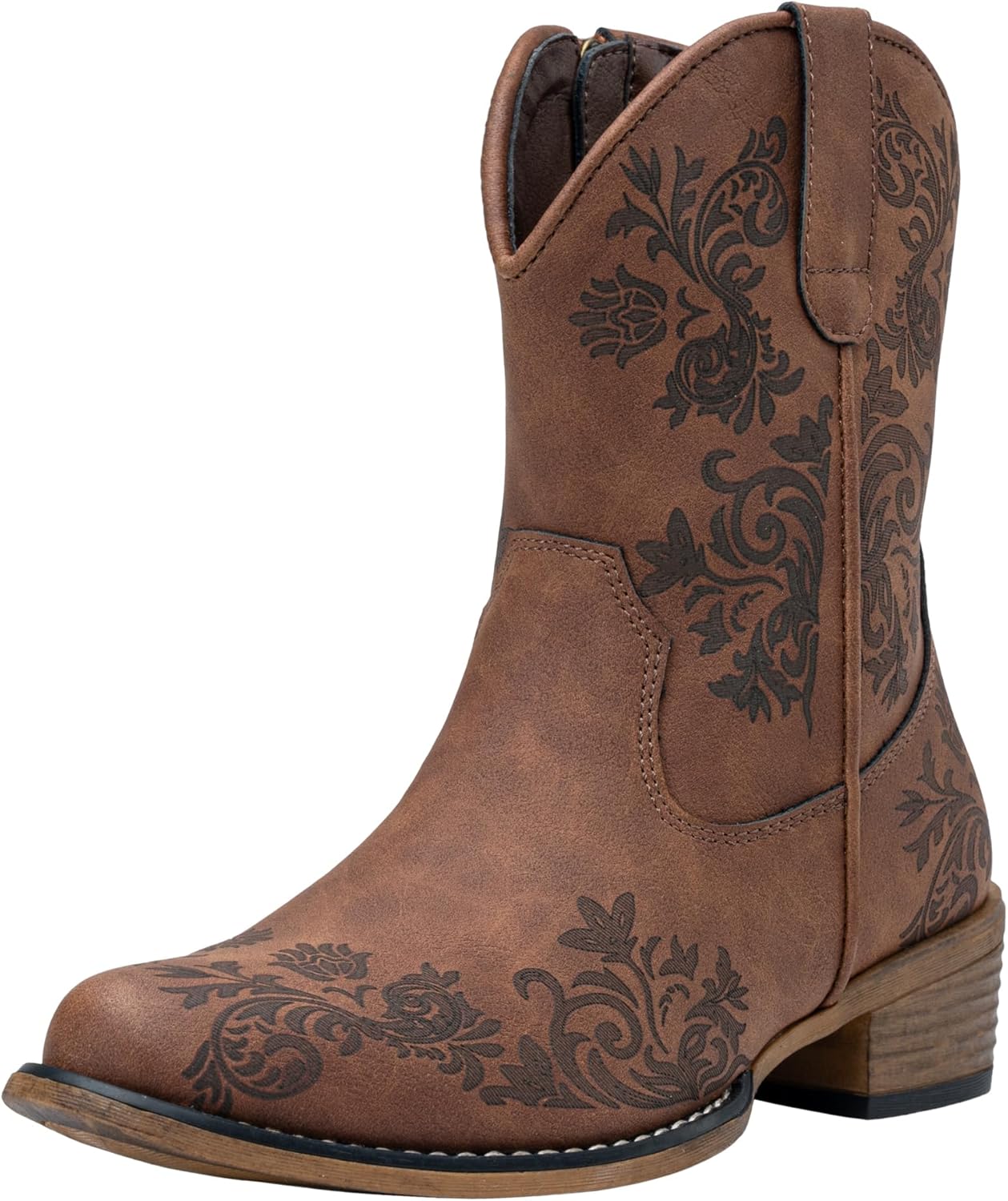 Jeossy Women's Cowboy Boots Short Cowgirl Ankle Boots Western 9805 Booties Square Toe with Zipper