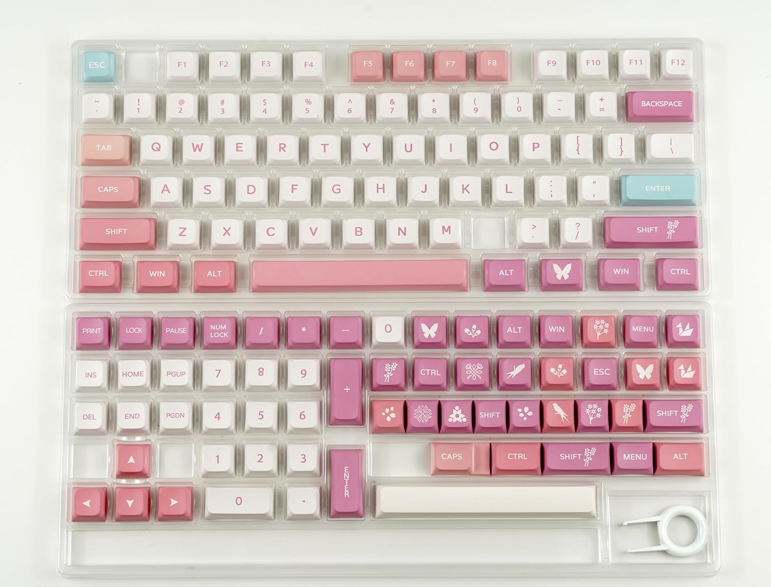 PBT keycaps XDA Cute Pink Dye Sublimation Universal Mechanical Keyboard keycaps Compatible with Cherry MX switches,Gateron,Kailh TTC JWK Kawaii Keycap Set