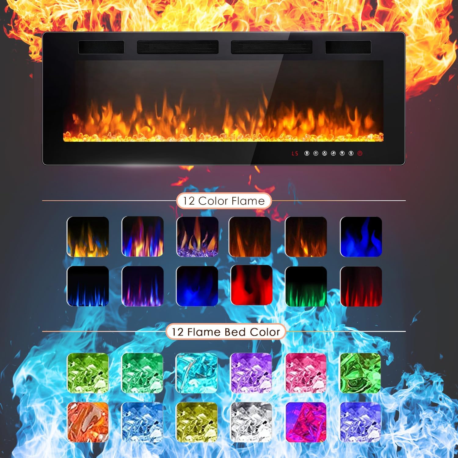 Attractive Flame:There's a button to control the flame color, and a button to control flame bed Color. 12 flame color and 12 flame bed color ,5 flame speed modes and 5 flame brightness levels. You can get the flame you want.Simply pick up the remote control provided and choose your most comfortable settings