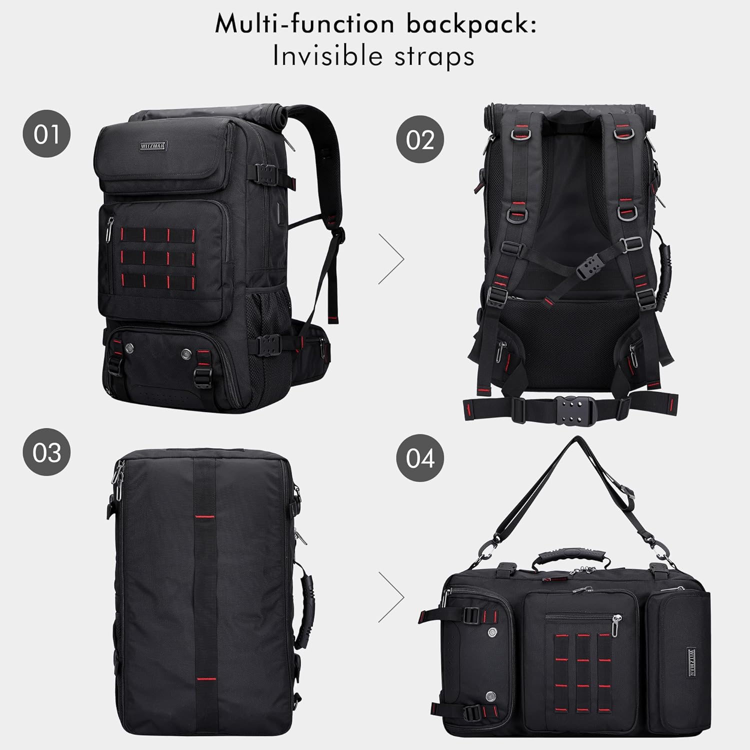 Multifunctional Carrying On Backpack: This men rucksack come with an adjustable and removable shoulder strap, can be used as a duffel bag. Versatility pocketto keep your items organized and easy to find. Suitability travel partner for men women who like international travel, camping,overnight trip.