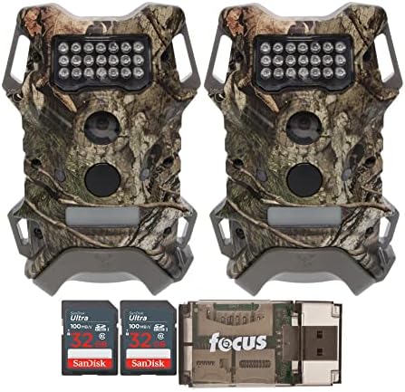 Bundle Includes: 2 x Wildgame Innovations Terra Extreme 14 Megapixel IR Trail Camera (Mossy Oak), 2 x 32GB Ultra SDHC UHS-I Memory Card (100MB/s), and All-In-One High-Speed Card Reader