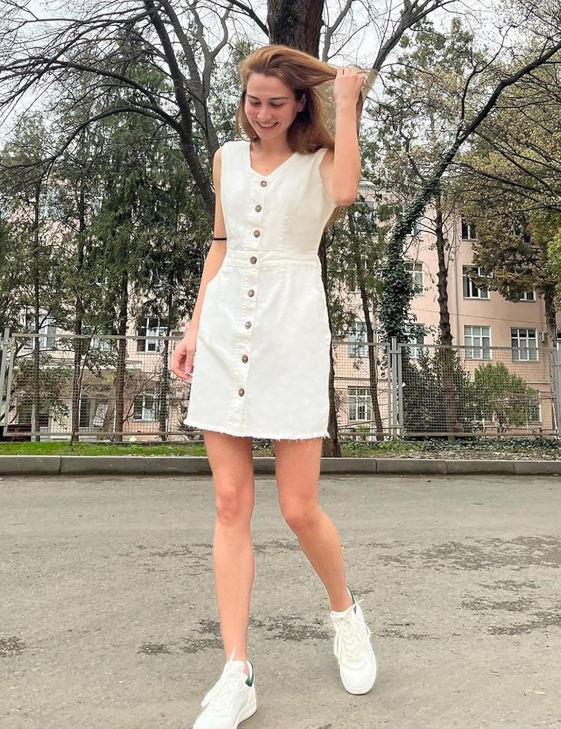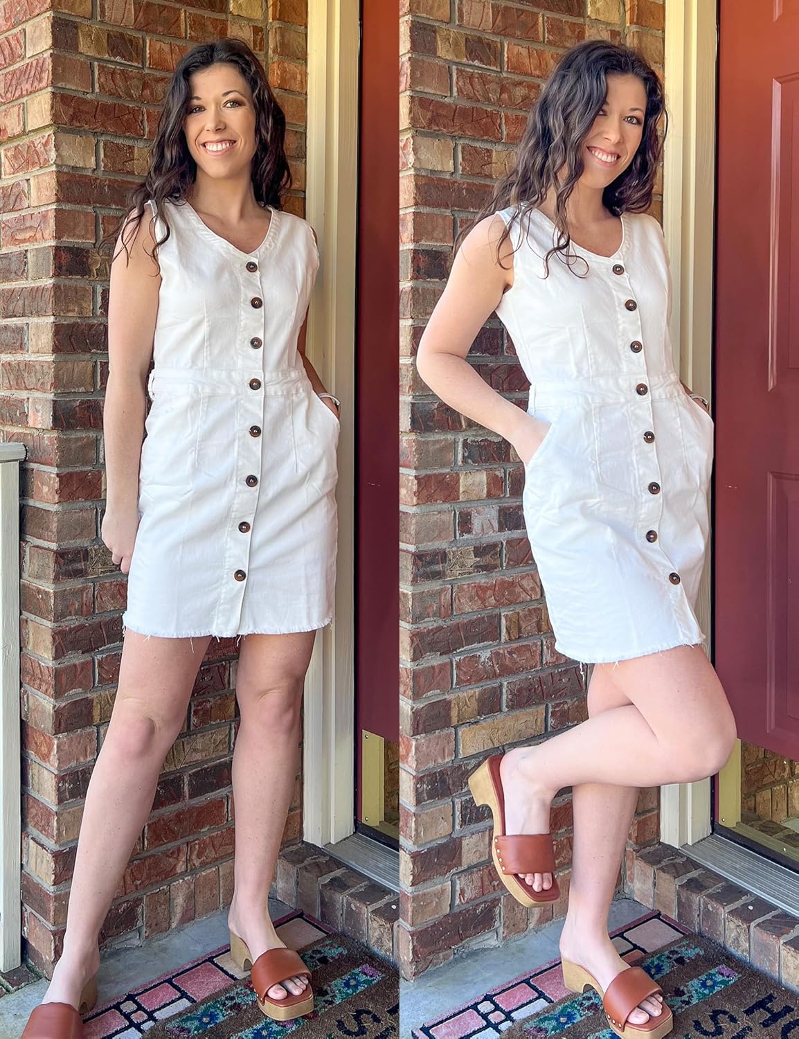 luvamia Women's Casual V Neck Sleeveless Jeans Button Down Denim Short Dress