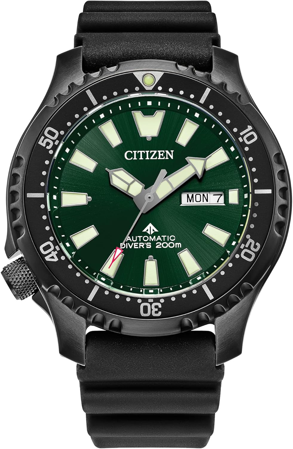 Reloj de pulsera automático Citizen Men's Promaster Sea con correa de poliuretano, 3 agujas, fecha y fecha, bisel giratorio, cristal de zafiro antirreflejos, manecillas y marcadores luminosos