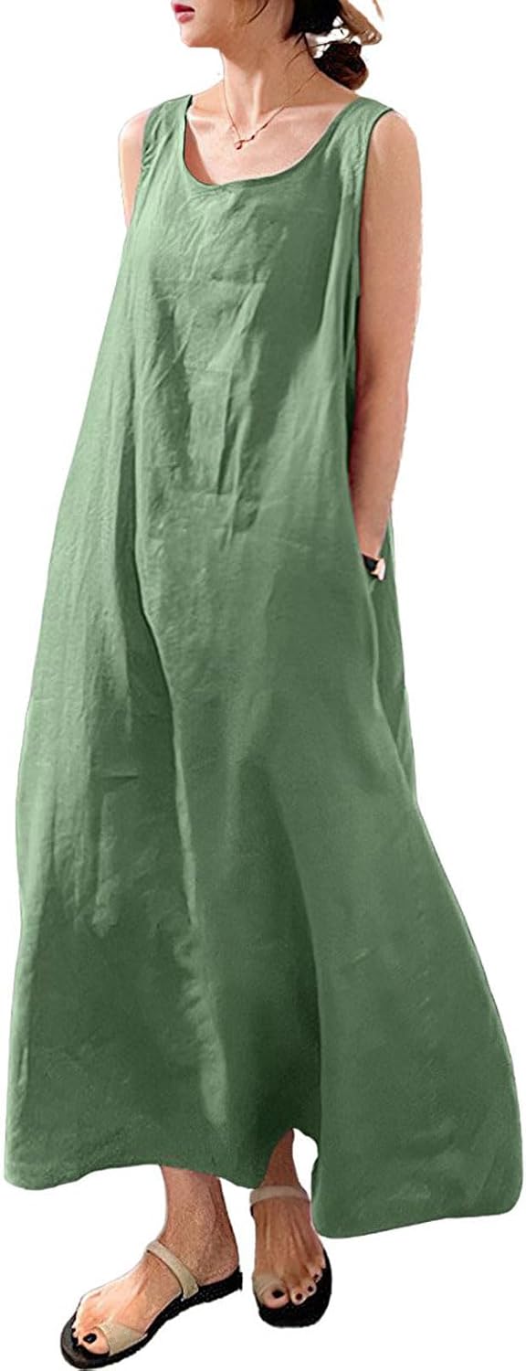 vestido de verano sin mangas de algodón para mujer chouyatou, túnica maxi de playa con bolsillo