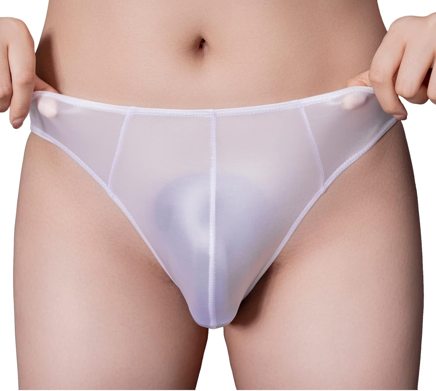 Braguitas de bikini Vxuxlje Sissy de satén brillante transparente para hombre, ropa interior