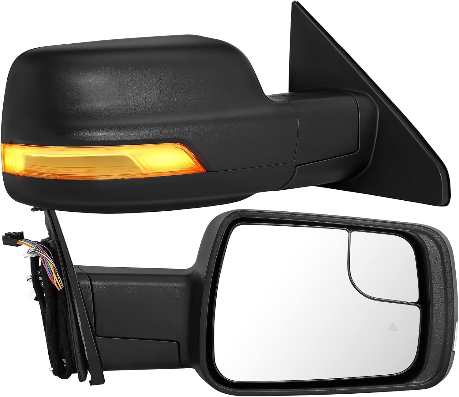 From warehouse in USFitment Applications:2019 For Dodge Ram 1500 Pickup2020 For Dodge Ram 1500 Pickup2021 For Dodge Ram 1500 Pickup2022 For Dodge Ram 1500 PickupThe Traits of Our Mirrors:Manual Flip Up and Folding Function.Power adjustment for flat glass and manual for convex glass.With heated and turn single light.Other: Puddle Light; Parallel Auxiliary Light; Temperature Sensor; Black Cap Housing.Convex glass-It can provide better and wider angle of rear view. Top quality reflective glass ensures less distortion. well Quality reflective glass ensures less distortion and a clear horizon.Economic - Made by OEM standard,meet OEM specification,but less cost than buying from dealers. Hassle-free return if there is any manufacture mistake.Notes:These mirrors will only work for vehicles with these exact options. If you do not have the options listed, these mirrors may not Function properly. The installation sequence can be a little bit hassle so that professional installation is highly recommended.Package Included:a pair,left (driver side) and right (passenger side)