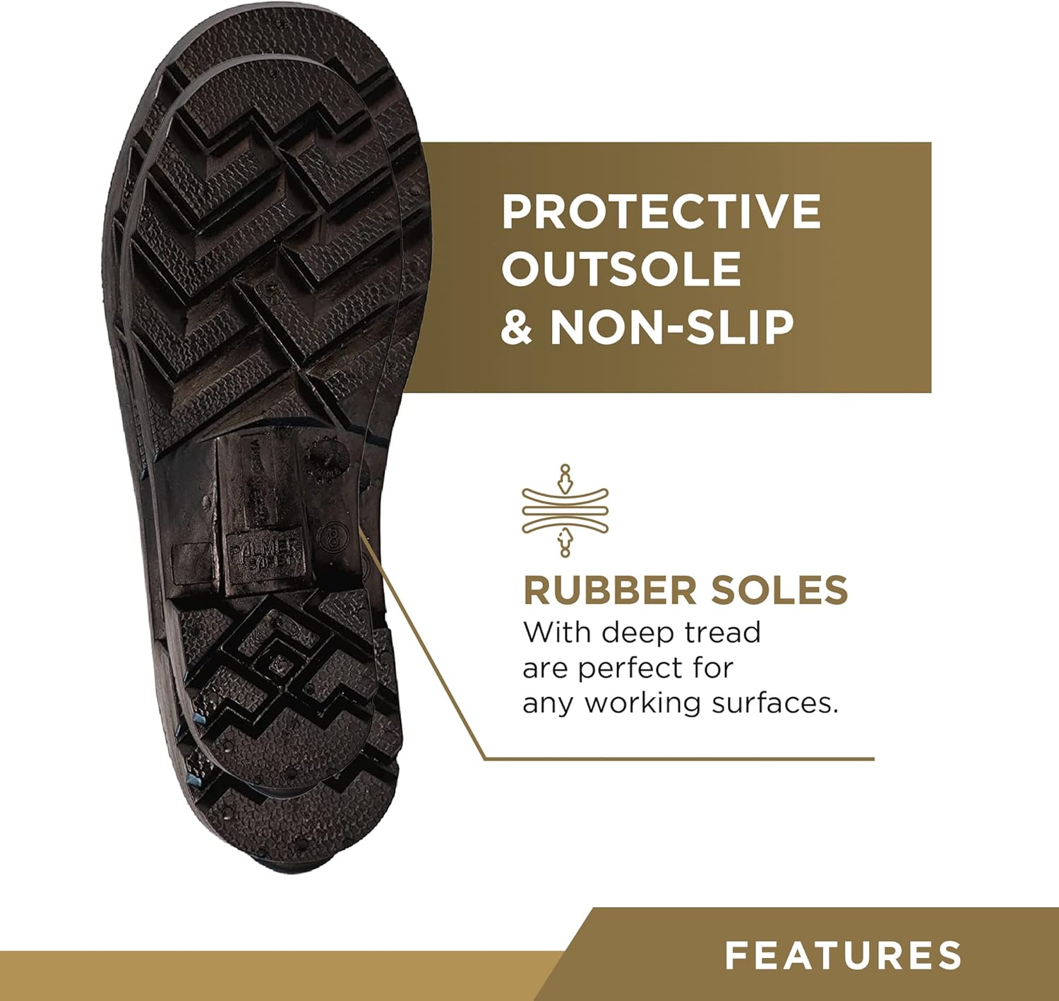 Nuestras botas de PVC son resistentes a los productos químicos orgánicos y a cierta exposición a los aceites. Estas punteras de acero proporcionan un ajuste cómodo con una plantilla acolchada extraíble para una mejor alineación y una mejor amortiguación del talón.