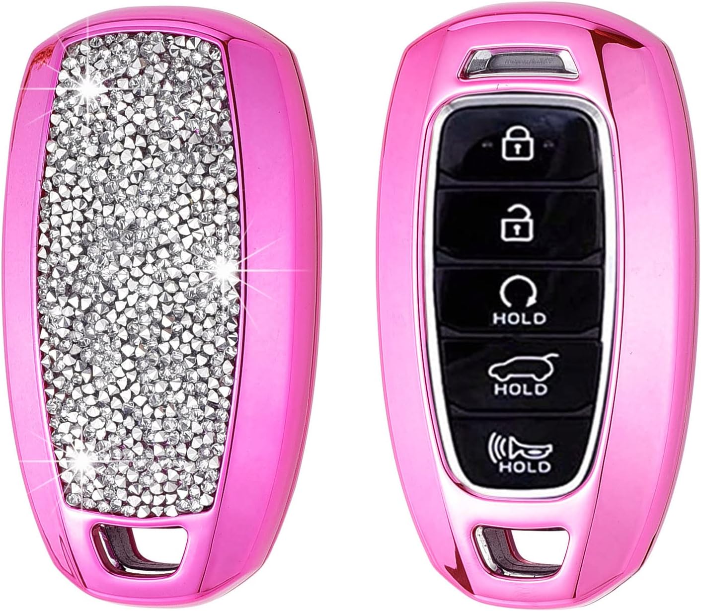 Royalfox(TM) 3 4 5 Buttons 3D Bling Diamond Crystals Smart Remote Key Fob case Cover for Hyundai i30 Azera ix35 Elantra Accent Santa Fe IG Grandeur,2017-2022 Hyundai Palisade (Pink)