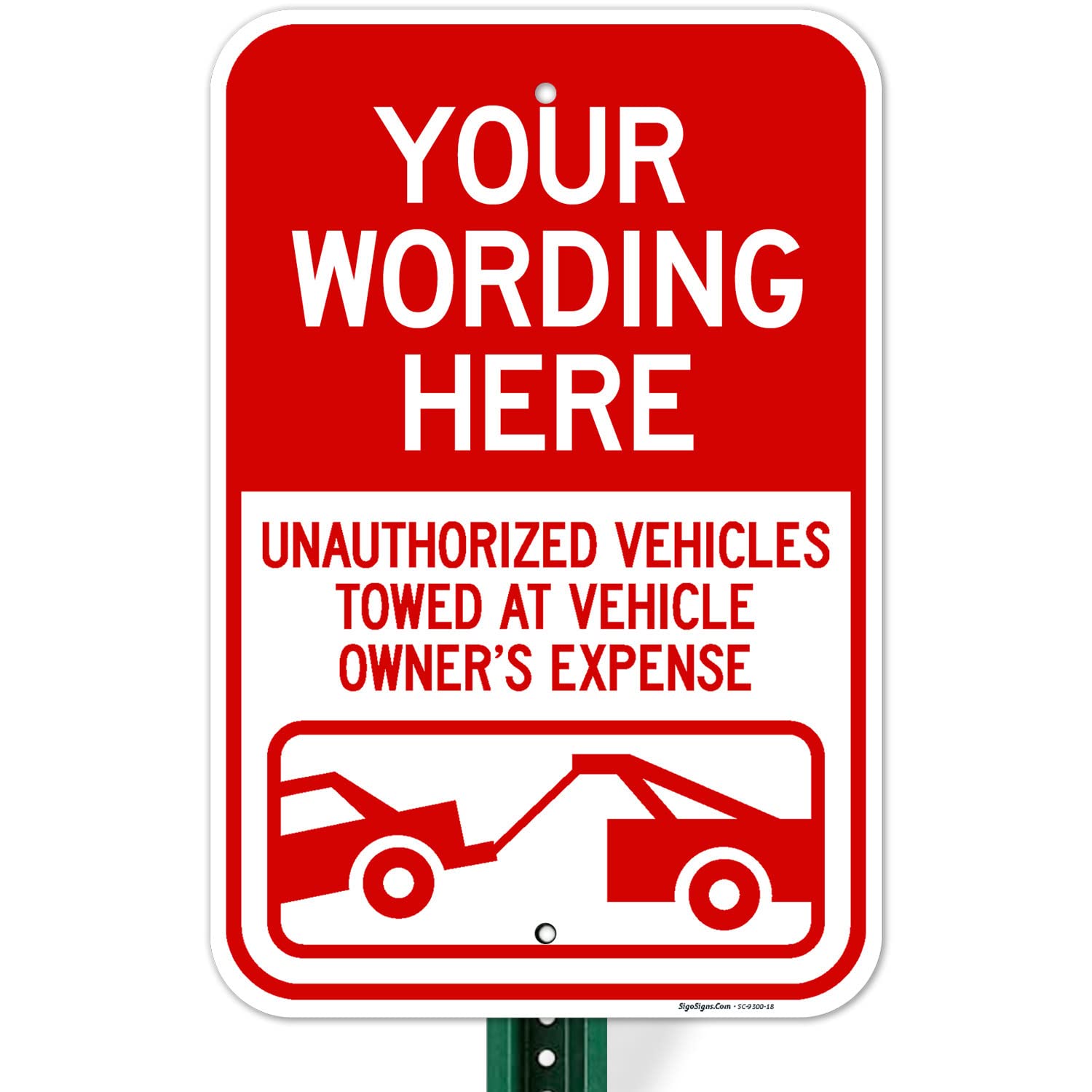 Unauthorized Vehicles Will Be Towed at Vehicle Owner's Expense Custom Sign, 12x18 Inches, Rust Free .063 Aluminum, Fade Resistant, Made in USA