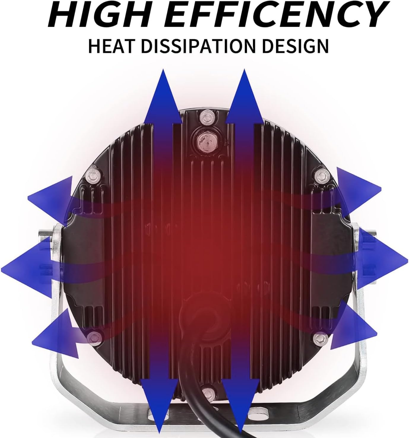 EXCELENTE RESISTENCIA AL CALOR - La luz todo terreno es duradera y tiene buena disipación de calor. La temperatura de trabajo es de -40 a 80 grados Celsius, que puede soportar las duras condiciones climáticas y prolongar la vida útil hasta 50000 horas. La lámpara de conducción está hecha de materiales de aluminio de alta calidad, acero inoxidable y PC, que tiene excelente rendimiento impermeable, a prueba de polvo y a prueba de golpes.