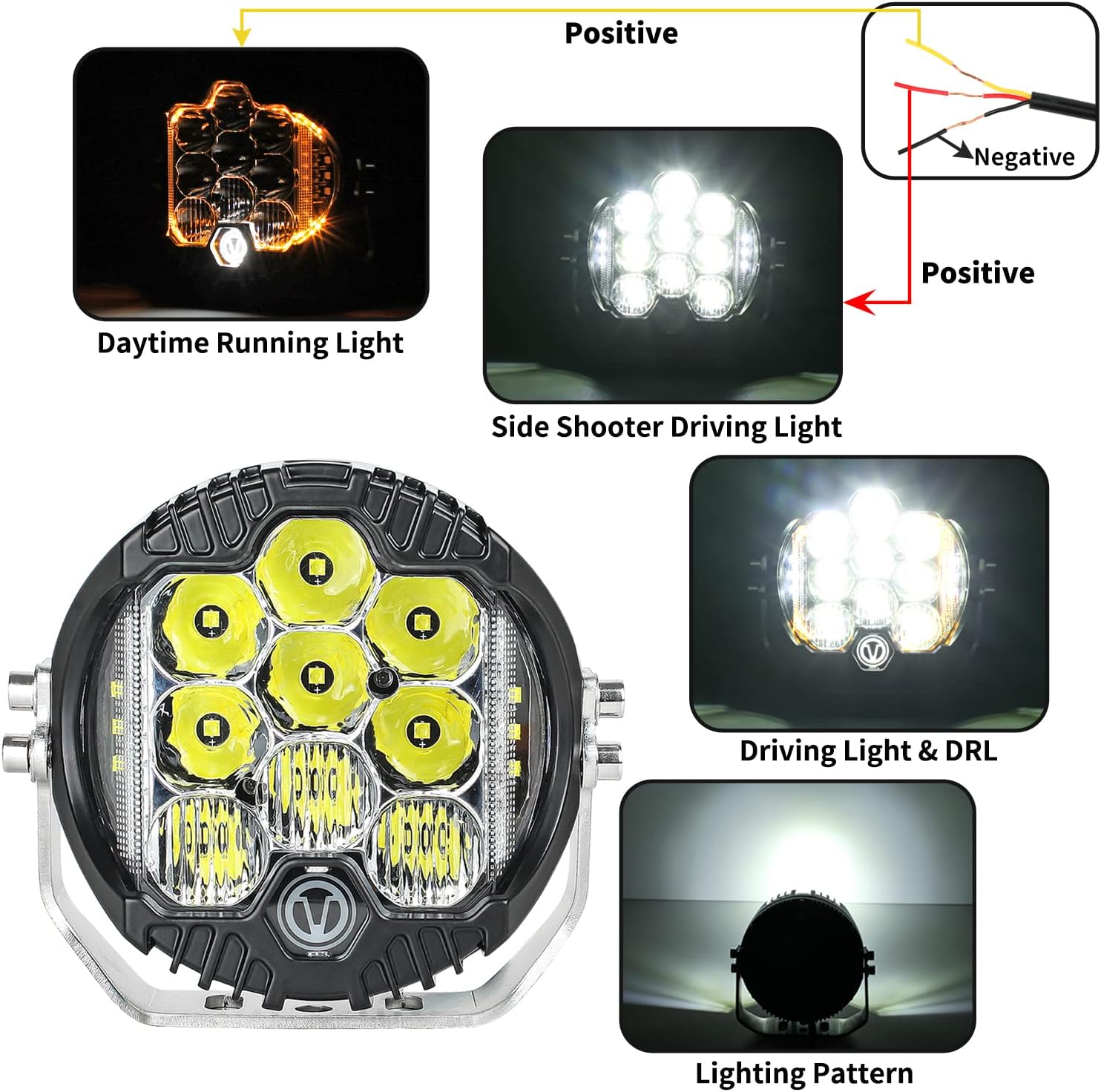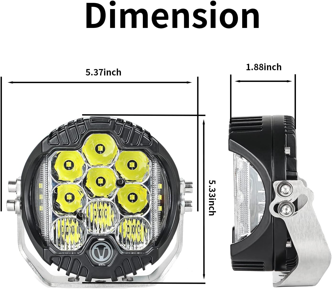 ASPECTO ÚNICO DASIGN - El último LED de bajo consumo se utiliza como DRL en el centro. Como iluminación auxiliar brillante, nuestros pods de luz de conducción complementan la distancia más lejana para su conducción, maximizando la salida de luz y expandiendo el rango visual máximo de conducción, proporcionando la luz de conducción más segura para usted.