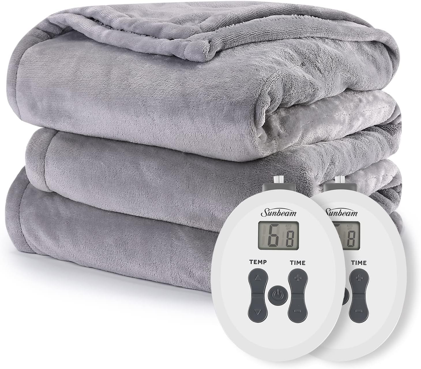 Sleep better with the Sunbeam Velvet Heated King Size Blanket and beat those winter blues. Indulge yourself with its lush and silky velvet material wrapping you in warmth and comfort all night long. Includes 2 easy to use digital controllers with independent control for each side of the bed. Features 12 heat settings to choose from and a selectable 12-hour auto-shut off feature for peace of mind. This stylish electric blanket comes in an elegant grey color that is sure to compliment any decor. Remove the controllers and place the blanket into the washer and dryer for easy maintenance. You can rest easy knowing it was built to last and includes a 5-year limited warranty.
