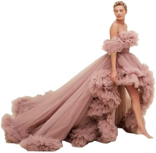 High Low Puffy Tulle Prom Dresses Long for Women Ball Gown 2025 Tiered Ruffles Evening Party Dress