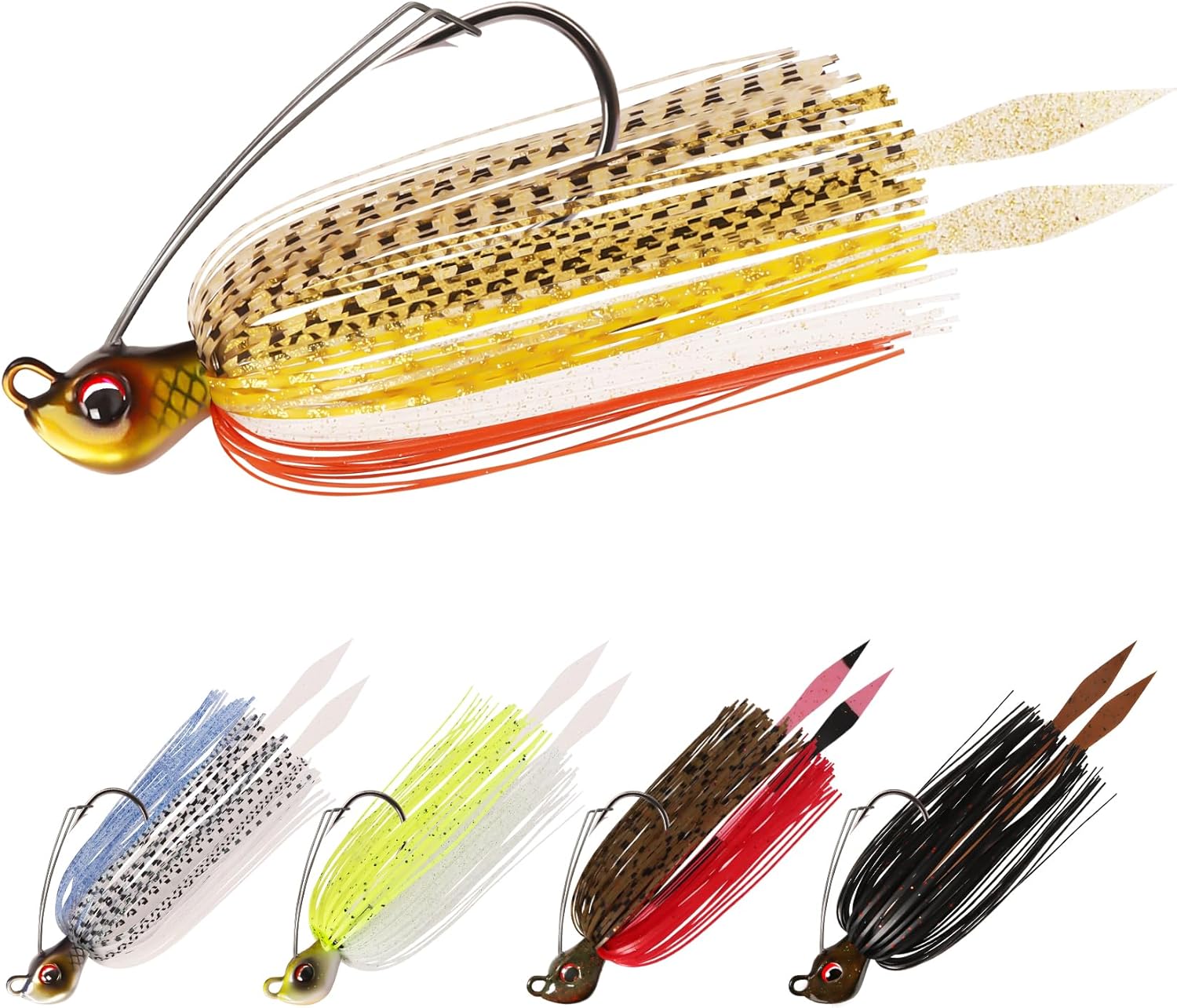 LIVELY & VIVID SKIRTED BASS JIG - To mesmerize bass with flowing movement, the freshwater bass jigs fishing lures finished with a muti-color silicone skirt with flash foil for lively action, which keeps good expansion in the water, produces extra realistic subtle movements and contours even without moving the lure. Plus, we equip the swimbait with different colors for use in different waters.