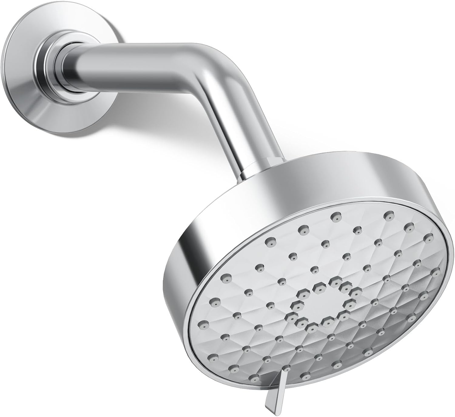 The Awaken 2.5 gpm showerhead brings KOHLER® quality, design, and performance to your shower. Advanced spray performance delivers three distinct sprays – wide coverage, intense drenching, and targeted – while an ergonomically designed thumb tab smoothly transitions between sprays with a quick touch. The artfully sculpted sprayface reveals simple, architectural forms that complement contemporary and minimalist baths.