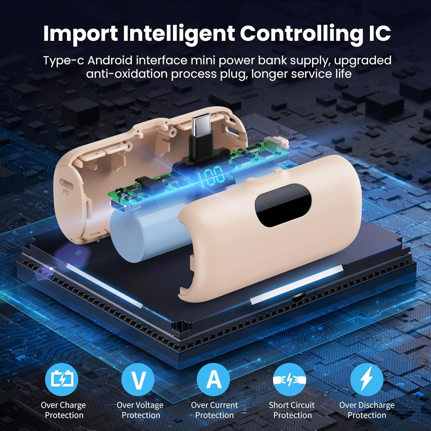 Mini Portable Charger 5000mAh Power Bank,15W PD USB C Cell Phone Portable Power, LCD Display Battery Pack Compatible With iPhone 15/15 Plus/15 Pro/15 Pro Max/Android/Samsung/Moto/LG (Type-C Only)
