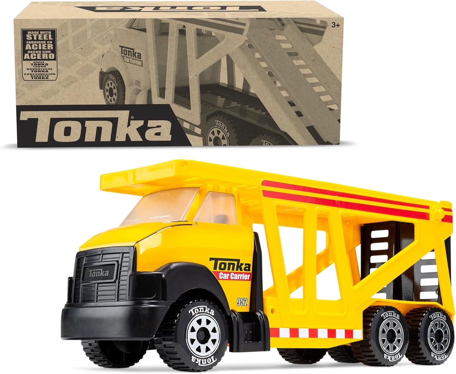 Tonka Steel Classics, Classic Car Carrier – Made with Steel and Sturdy Plastic, Yellow Friction Powered, Boys and Girls, Toddlers Ages 3+, Big Construction Truck, Birthday Gift, Holiday