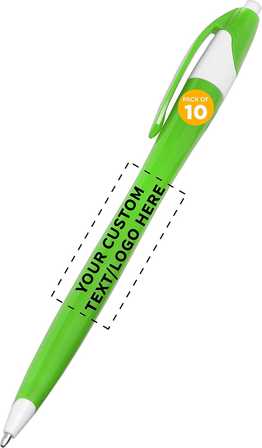 DISCOUNT PROMOS Custom Two Tone Plastic Office Pens Set of 10, Personalized Bulk Pack - Black Ink, Great for Office, School, Business, Tradeshows, Other Events - Green