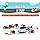 SNAP TOYS: This 9-piece set of vehicles includes a fire truck, pickup truck, helicopter, airplane, submarine, land speed racer, loader, spaceship, and steam engine. Three vehicles have pull-back propulsion and together there are 1,000's of combinations for endless fun!
