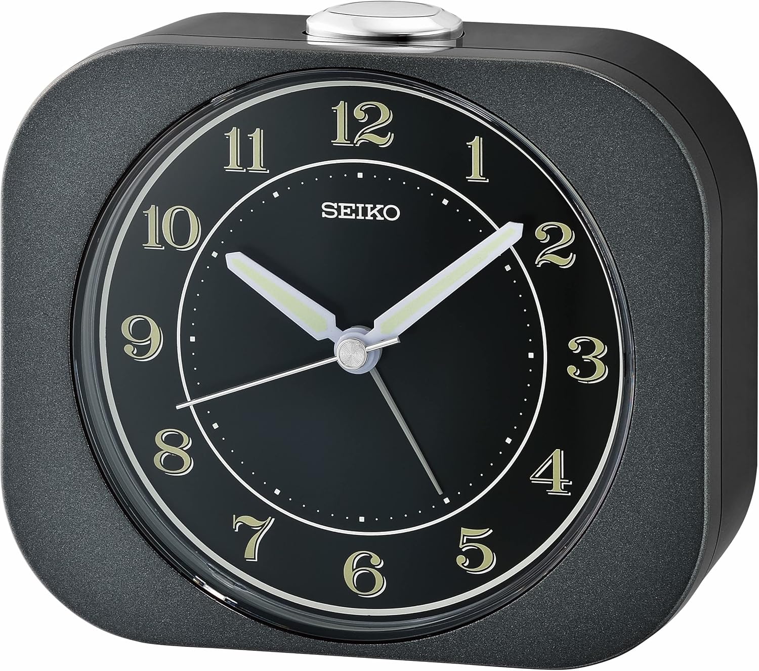 Seiko Kyoda es todo lo que esperarías de un reloj de alarma. Este reloj de alarma de estilo moderno de mediados de siglo cuenta con alarma de pitido, función de repetición, segundero de barrido silencioso, luz y manecillas luminosas en una caja metálica de plástico. Elige entre marrón, negro, verde o rojo.
