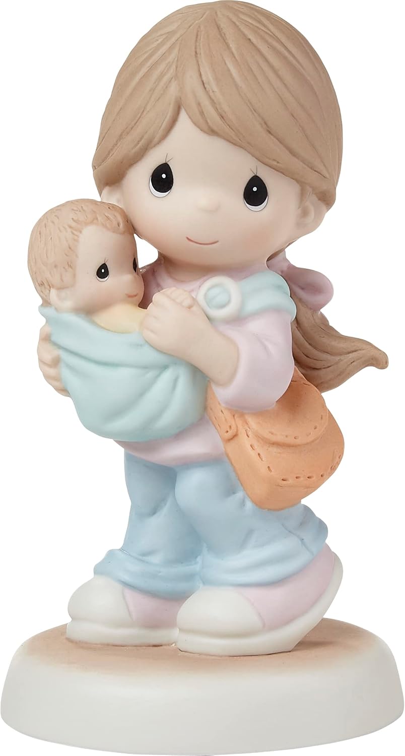 A new mother heads out wearing her dear baby in a sling. Both feel safe in the knowledge that she will always hold her baby near. More and more moms are choosing to wear their babies in slings and wraps to deepen their connection and bond while giving the parent the freedom to go about her day while her little one tucked close. Give this sweet figurine to any new mother in celebration of a new arrival. It makes a thoughtful baby shower gift, too. Measuring approximately 5.25”H, this figurine is meticulously sculpted of bisque porcelain and is expertly hand-painted. For more than 40 years, Precious Moments has been devoted to making the world a kinder place by helping people Share The Gift Of LoveSM. A timeless brand, Precious Moments helps you celebrate everyday moments and commemorate special occasions with hand-painted porcelain figurines and ornaments as well as contemporary kitchenware, home décor, baby gifts, and more. A unique inspirational message lies at the heart of every Precious Moments product, thoughtfully designed so you can turn your special moments into memories that last a lifetime.