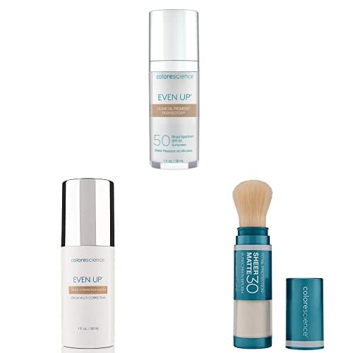 COLORESCIENCE PIGMENTATION CORRECTION BUNDLE: Even Up Clinical Pigment Perfector SPF 50 + Even Up Multi-Correction Serum + Total Protection Sheer Matte SPF 30 Sunscreen Brush