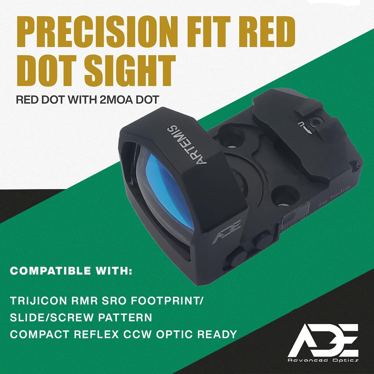 ADE RD3-022 Artemis PRO Motion Activated, Multi-6 Reticles RED Dot Sight for Optics Ready Pistol That is Compatible with Trijicon RMR SRO Footprint/Slide/Screw Pattern – Compact Reflex CCW Optic Ready