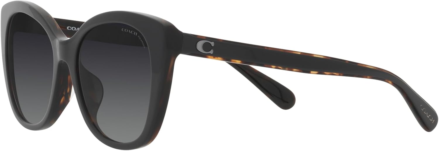 An oversized cat eye frame with peaked edges provide HC8365U Universal Fit with modern yet timeless appeal. Both bold and lightweight, they offer retro-inspired style. Available in classic colors and transparent tones, with gradient or polarized lenses. Coach sunglasses sold by authorized sellers, like Amazon.com, are eligible for all manufacturer warranties and guarantees. Click on the Coach link above the product title to shop the entire Coach sunglass and eyeglass assortment.