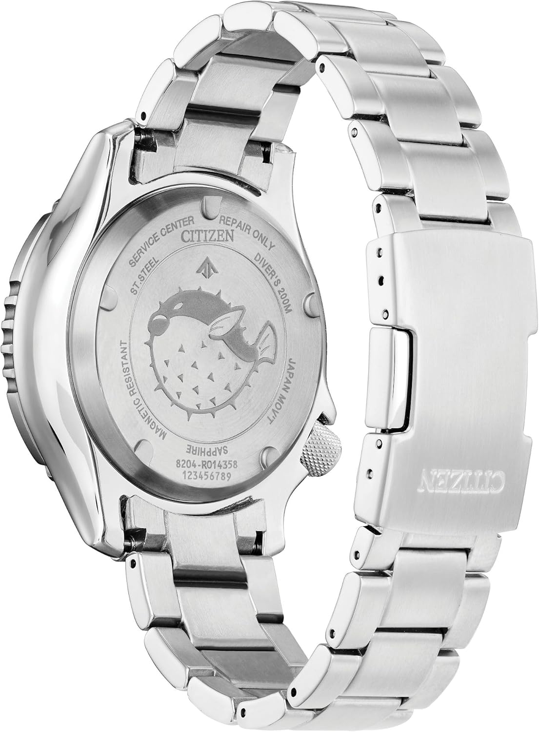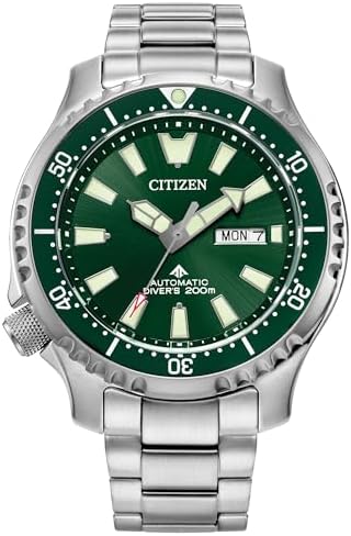 Reloj automático de buceador Eco-Drive Promaster Citizen para hombre, clásico icónico, diseño de bisel dentado inspirado en el fugu, acero inoxidable, esfera plateada/verde