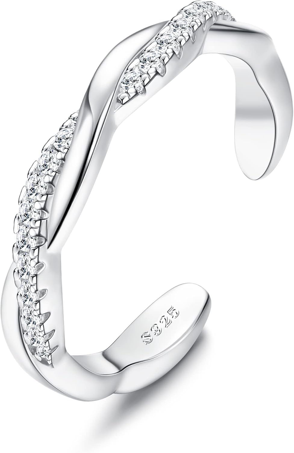 FIASASO 925 Sterling Silver Toe Rings for Women Adjustable 14K White Gold Plated Flower Cz Snake Twist Opal Band Rings Summer Beach Open Toe Rings Foot Jewelry
