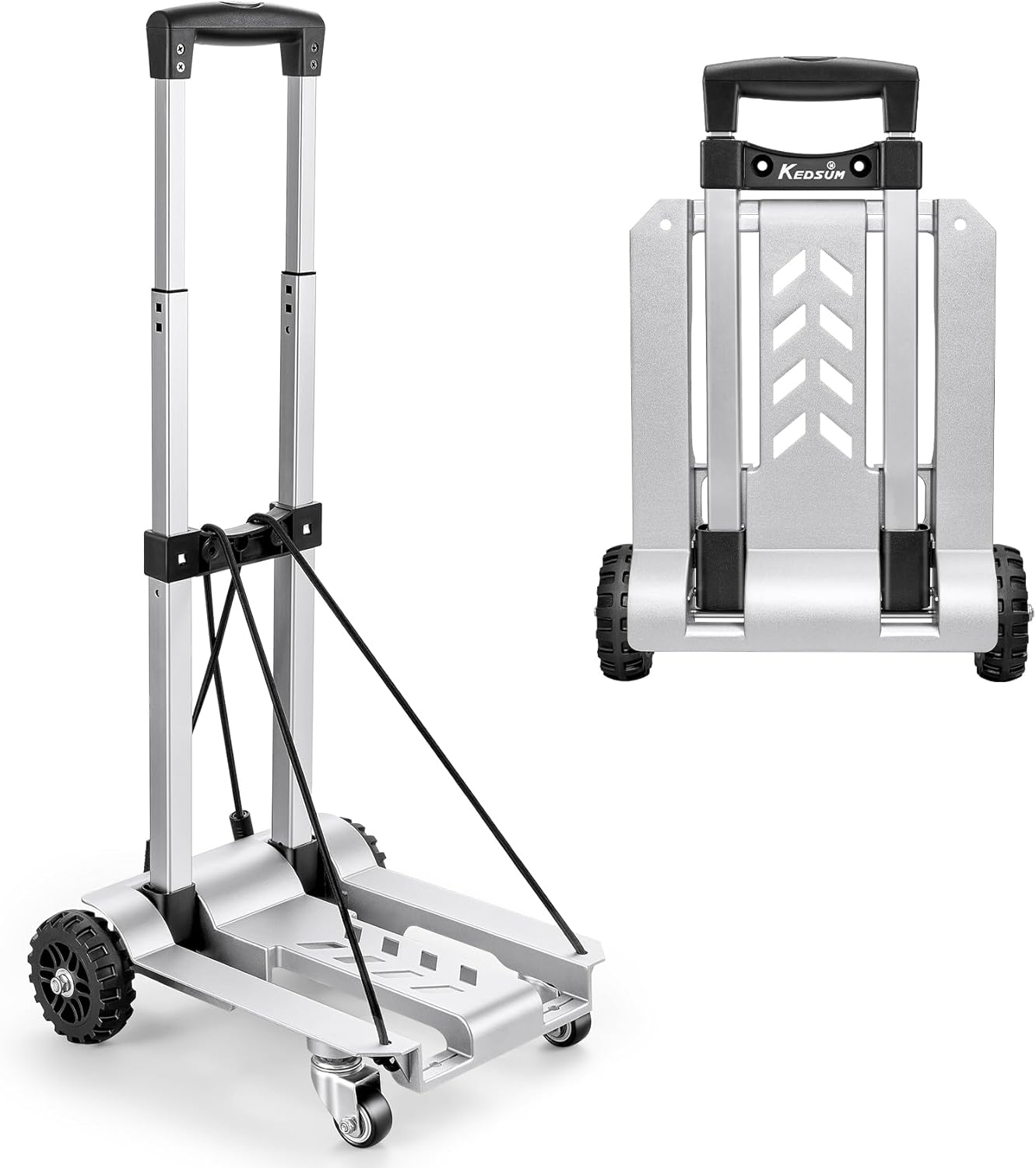KEDSUM 270LBS Utility Luggage Cart with 4 Wheels, 100% Aluminum Hand Truck Dolly, Folding Hand Truck with Advanced Tank Wheels, Portable Dolly Cart for Luggage, Travel, Shopping, Office Use