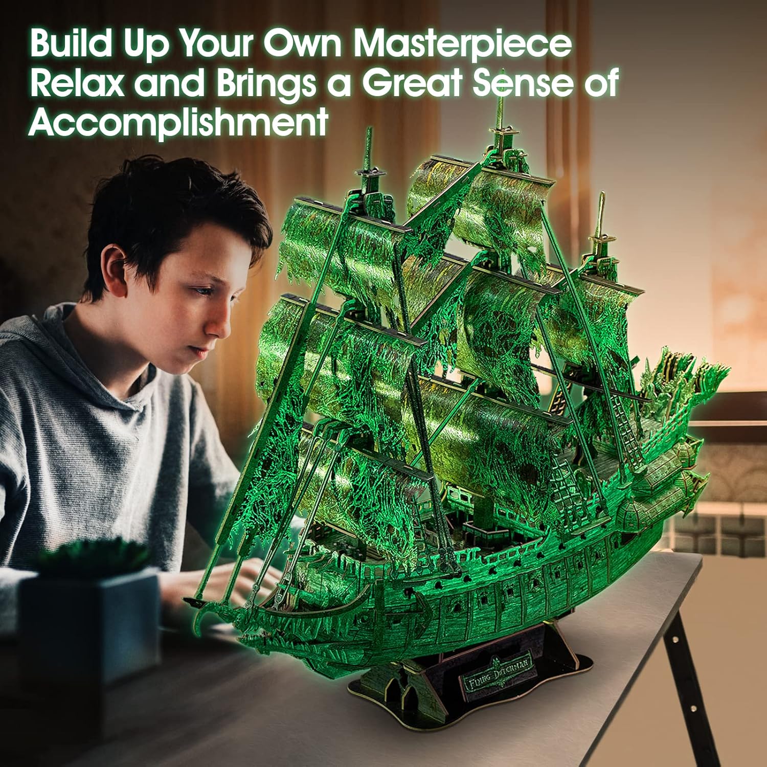 CubicFun 3D Jigsaw Puzzles Dutch Ship Model Flying Luminous Haunted Pirate Ship DIY for Adults and Kids, Building Kits Office Decoration for Women and Men, 360 Pieces