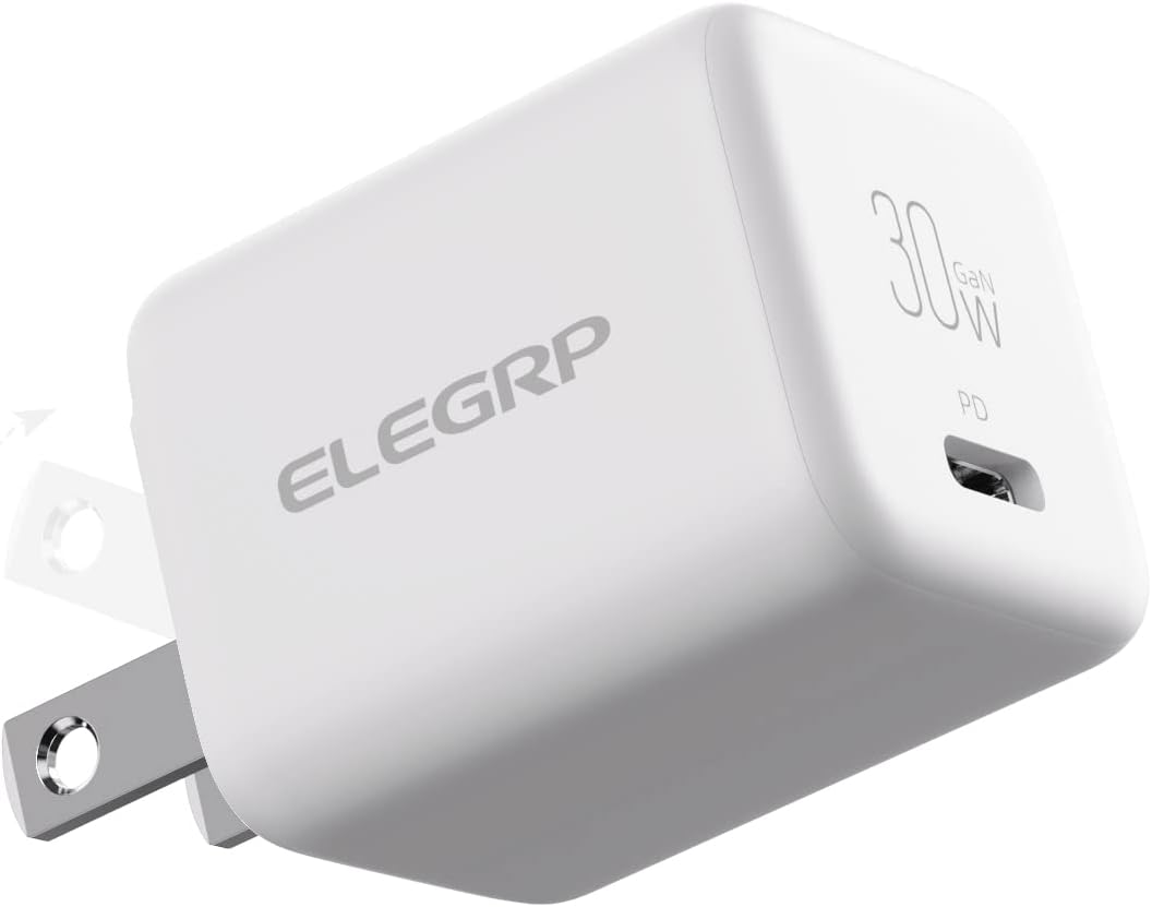 ELEGRP 30W USB C GaN Charger Cube, PD Power Delivery Fast Type C Charging Block, Wall Charger with Foldable Plug for iPhone 14/13/12/11, XS/XR/X, iPad, Pixel, AirPods, Galaxy and More