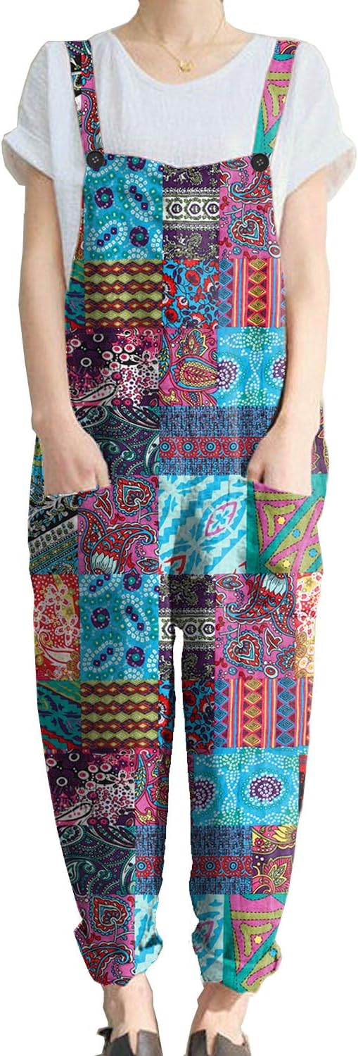 Women's Casual Loose Long Cotton Bib Overalls Baggy Plus Size Jumpsuits Rompers