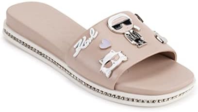 Karl Lagerfeld Paris Women's Jeslyn Effortlessly Fashionable Slide-on Shoes with Bold Klp Pins Flat Sandal