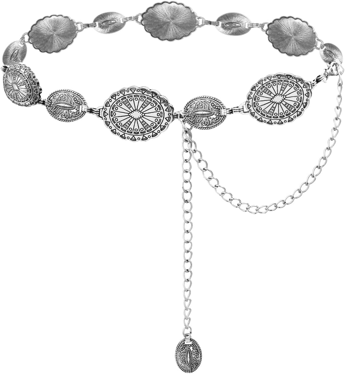 TOPACC Western Metal Concho Belt for Women Cowgirl Chain Belts for Dresses Jeans Country Concert Outfit